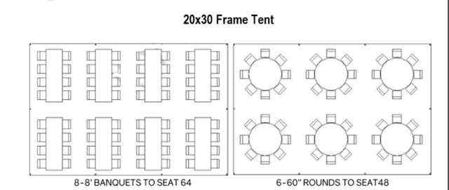 Introducing our versatile 20x30 Frame Tent, perfect for any outdoor event or gathering. This spacious tent offers a total of 600 square feet of unobstructed space, providing ample room for your guests to mingle, dine, or celebrate in comfort. The frame design eliminates the need for center poles, maximizing your usable space and allowing for flexible layout options. Constructed with durable, weather-resistant materials, our tent is designed to withstand various weather conditions, ensuring your event goes smoothly, rain or shine. The elegant, white canopy adds a touch of sophistication to any occasion, making it ideal for weddings, corporate events, family reunions, or festivals. Easy to set up and take down, our 20x30 Frame Tent rental includes professional installation by our experienced team, ensuring a hassle-free experience from start to finish. Customize your tent with optional sidewalls, lighting, and flooring to create the perfect atmosphere for your event. Rent our 20x30 Frame Tent today and make your event unforgettable.