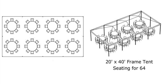 The large 20x40 tent will provide a nice covering for you and many guests. This is a very large tent that will hold many tables, chairs, and other party rental equipment.