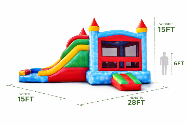 3. If you're renting a water slide or combo, a water source, and a hose within 100 feet of the setup area is required.