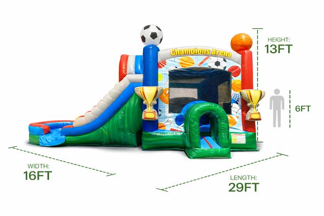 Introducing the Sports Combo Bounce House, the ultimate inflatable attraction for any sports-themed event or celebration! Perfect for birthday parties, school events, or community gatherings, this versatile bounce house brings endless fun and excitement to kids of all ages.