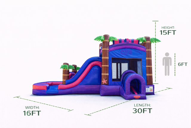 3. If you're renting a water slide or combo, a water source, and a hose within 100 feet of the setup area is required.